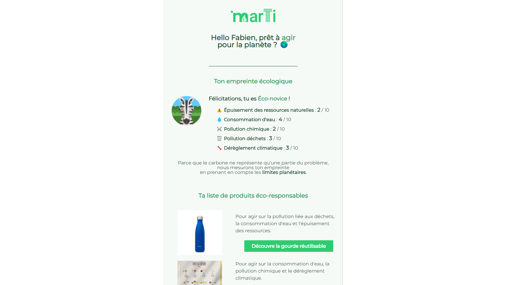 - They received an email with their ecological footprint summary and the links to buy their recommended products (click on the first image above).